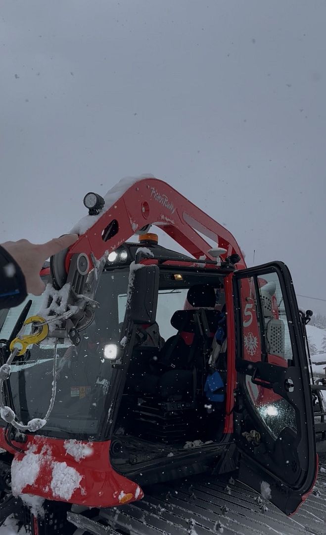 Möglich macht das ein GPS-Gerät, das direkt auf dem Pistenbully montiert ist. Auf dem Bildschirm sieht der Fahrer exakt, wie viel Schnee sich unter der Raupe befindet. So kann über die gesamte Piste hinweg eine gleichmäßige Schneedecke gewährleistet werden. Unterschiedliche Farben zeigen dabei sofort an, wo noch Schnee fehlt oder wo bereits genug vorhanden ist. Wirklich spannend, wie technisch, detailreich und präzise der Job eines Pistenbullyfahrers ist – ein wahres Hextakel!